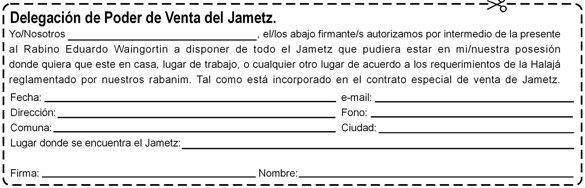 nuestro Rabino Eduardo Waingortín, y él a su vez realizará la venta