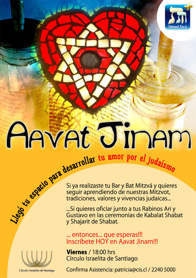 Aavat Jinam Llegó tu espacio para desarrollar tu amor por el judaísmo TODOS LOS VIERNES 18:00 hrs Círculo Israelita de Santiago