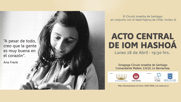 El Viernes 4 de Abril a las 19:30 horas, se dedicará el Kadish de duelo por el Iortzait de las siguientes personas, por lo cual invitamos a sus familiares y amigos a estar presentes en este sagrado momento de recordación, en nuestra sinagoga ubicada en Comandante Malbec 13210, Lo Barnechea. 28 de adar II al 5 de nisan