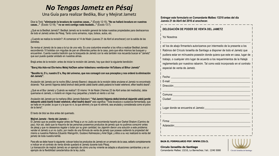 22 al 30 de Abril 2016, Víspera y Pésaj